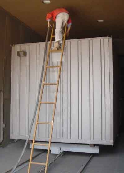 Container 拋丸清(qīng)理機設備主要用於清理新建和大修的集裝箱列車車體和大型部件表麵的鐵鏽、氧化(huà)皮(pí)和焊渣,還可以降低工件的內(nèi)應力,提高工件的(de)疲勞強(qiáng)度,強化表麵硬度。經該設備處理的工(gōng)件可達到表麵拋光處理的質量(liàng)覆蓋率。除鏽表(biǎo)麵清(qīng)潔度達到GB8923(塗裝前鋼材表麵鏽蝕等級和除鏽等級)中Sa2.5。表麵粗糙度Ra3.2-12.5微米,提(tí)高了漆膜(mó)附(fù)著力,相應提高了產品的耐(nài)腐蝕性和表(biǎo)麵質量。設備為(wéi)機電一(yī)體化,自動化程度高。設備主要由:工件輸送係統、前清理室(shì)、拋丸室、後清(qīng)理室、吹灰及補噴係統、磨料循環係統、通風除塵係統、電氣控製係(xì)統等組成。1.坑式基礎:用於安裝本設備的各(gè)種部件,包括坑、預埋件、直梯等。
