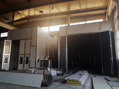 噴砂房又叫噴丸房、打(dǎ)砂房,適應於一(yī)些大型工件表麵清理、除(chú)鏽,增加工(gōng)件與塗層之間的(de)附著力效果(guǒ); 噴砂作業前,將工件送入噴砂室體,接通電、氣裝置,打開噴砂照明燈,穿(chuān)戴好防護服,關閉主機門(mén),手持噴砂槍(qiāng),打開噴砂開關,手持噴(pēn)槍對零(líng)件進行噴砂清理。 噴射出來的鋼丸掉落到噴砂室底部回收處,通過螺(luó)旋推料器進入提升機將(jiāng)丸料回收,經過旋(xuán)風分離器裝置對丸料、碎鋼丸、粉(fěn)塵進行分離,合格的鋼(gāng)丸直(zhí)接進入噴砂(shā)器上方(fāng)的儲料倉內,準備再次利用。 碎鋼丸和粉塵則被除塵係統直(zhí)接吸(xī)走,吸附於濾筒表麵,除塵器脈衝閥會定時產生脈衝信號,將儲存於氣包(bāo)中的壓縮空氣釋放(fàng),瞬間形成膨脹氣流作用於濾筒內部,將吸附於濾筒表麵的粉塵振動脫落,掉落於下端集塵鬥中,定期進行清理。